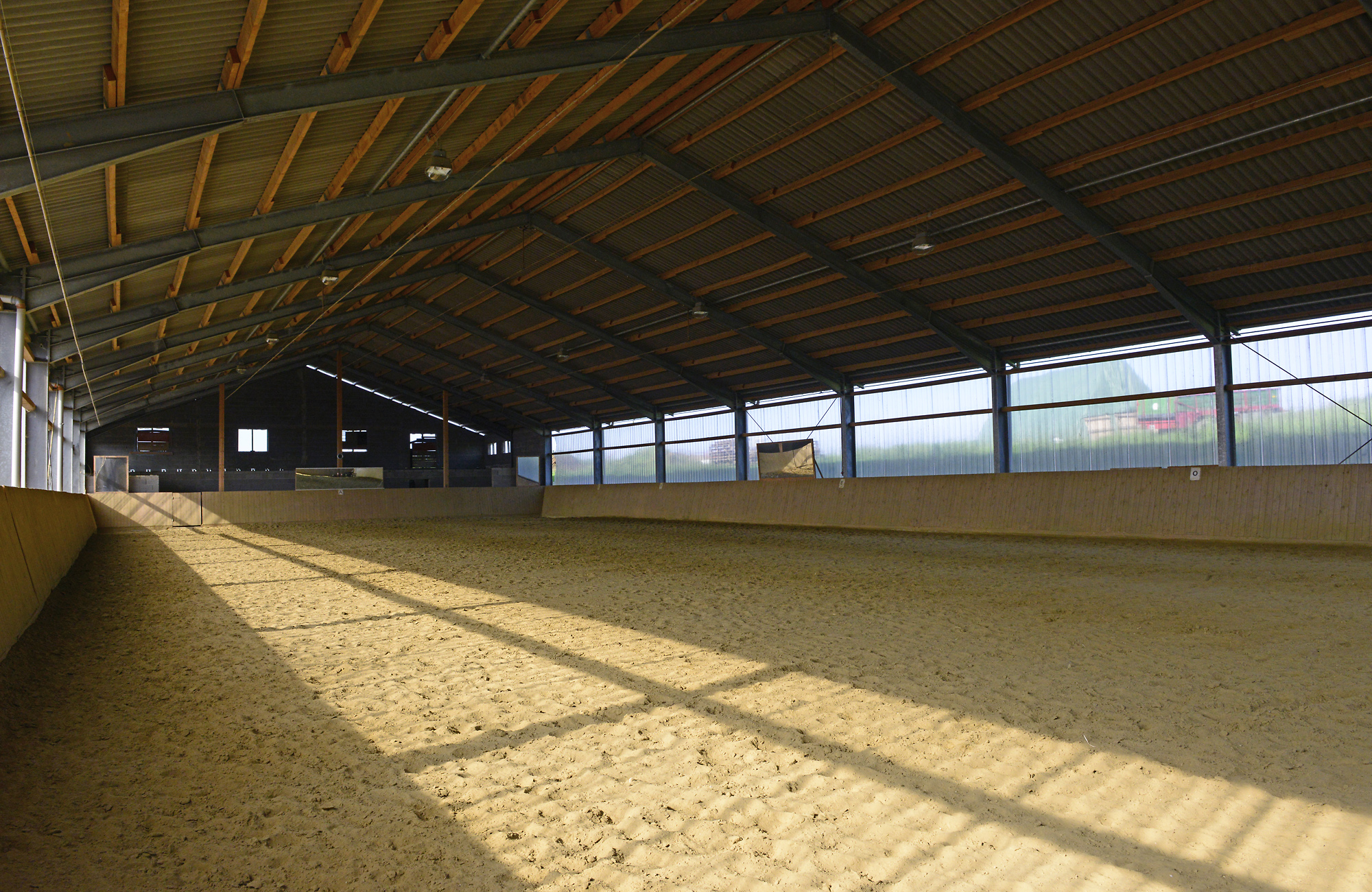 Wir bieten Ihnen Paddock-Boxen ohne Gitter zur Wahrung des sozialen Kontaktes der Pferde und einen Offenstall. Eine Reithalle, eine Longierhalle, ein großer Reitplatz sowie ein kleines Sandpaddock als Auslauf oder Winterpaddock stehen zur Verfügung.